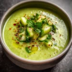 The first time I made this Avocado Cucumber Gazpacho, it was born out of sheer desperation. The summer sun was relentless, beating down on the patio and turning my kitchen into an oven. The thought of turning on the stove, or even preheating the oven, was simply unbearable. My family was slumped around, lethargic from the heat, and our usual summer salads had lost their appeal. I needed something new, something profoundly refreshing and, most importantly, something that required absolutely no cooking. I remembered seeing a picture of a vibrant green, chilled soup somewhere and thought, “Why not?” I raided the refrigerator and found the perfect ingredients: creamy avocados, a crisp English cucumber, zesty lime, and a handful of fresh cilantro. Twenty minutes later, I ladled the velvety, pale green liquid into chilled bowls. The reaction was instantaneous. The first spoonful was a revelation—an explosion of cool, clean flavors that seemed to zap the heat right out of the air. It was creamy without any dairy, rich yet unbelievably light, with a subtle kick from the jalapeño and a bright, zesty finish from the lime. It became our official “heatwave antidote,” the recipe everyone requests the second the temperatures start to climb. This isn’t just a soup; it’s a culinary magic trick that transforms a handful of simple, fresh ingredients into the most elegant and refreshing meal you’ll have all summer.