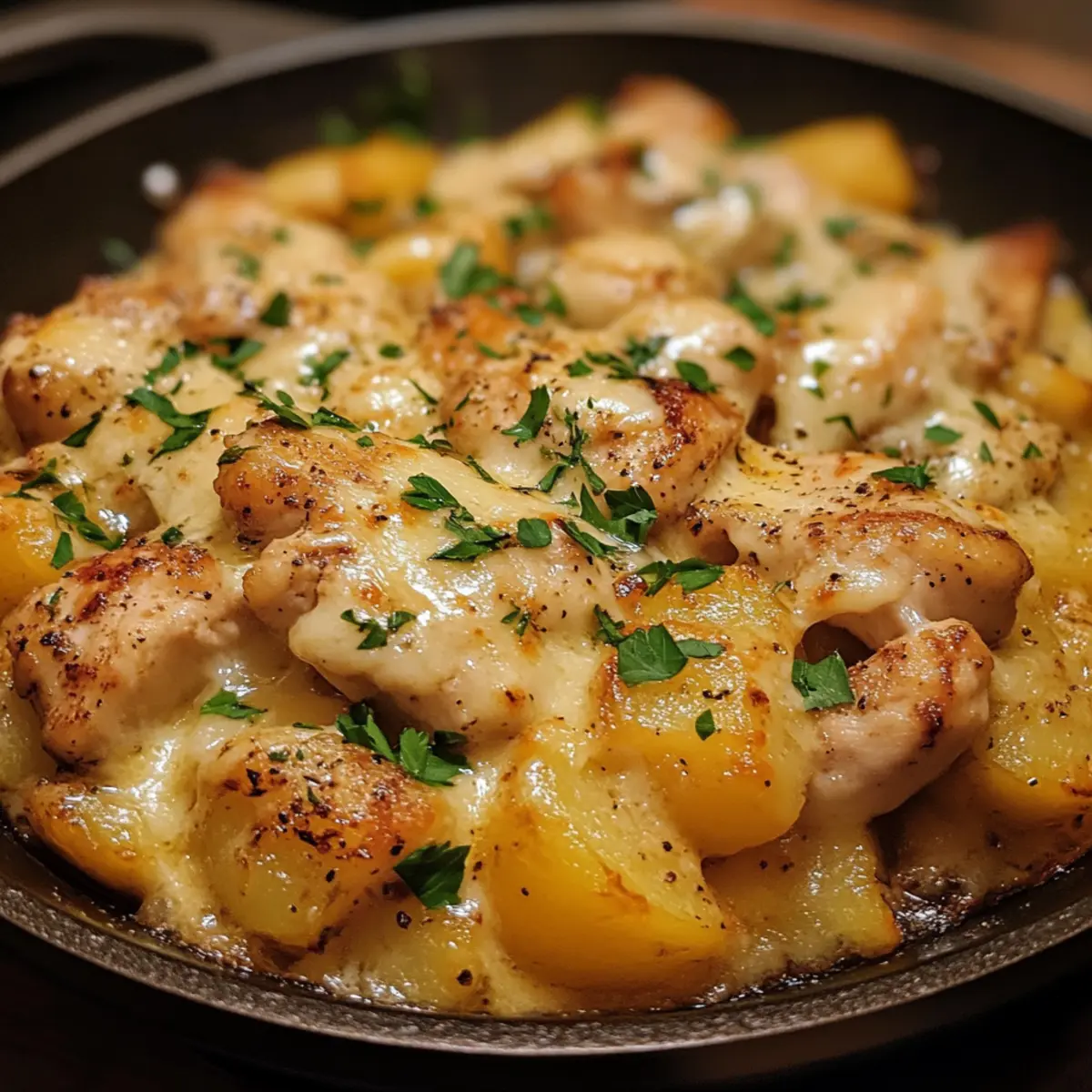 Comfort in one skillet: This recipe brings together tender chicken and crispy potatoes, all enveloped in gooey melted cheese for that ultimate cozy meal. Effortless cooking: With just one pan, prep and cleanup are a breeze—perfect for busy nights. Flavor-packed: Every bite delivers a satisfying blend of savory, cheesy goodness. Crowd-pleaser: Ideal for family dinners or impressing guests without stress. Versatile: Easily customize with your favorite herbs and spices to suit your taste.