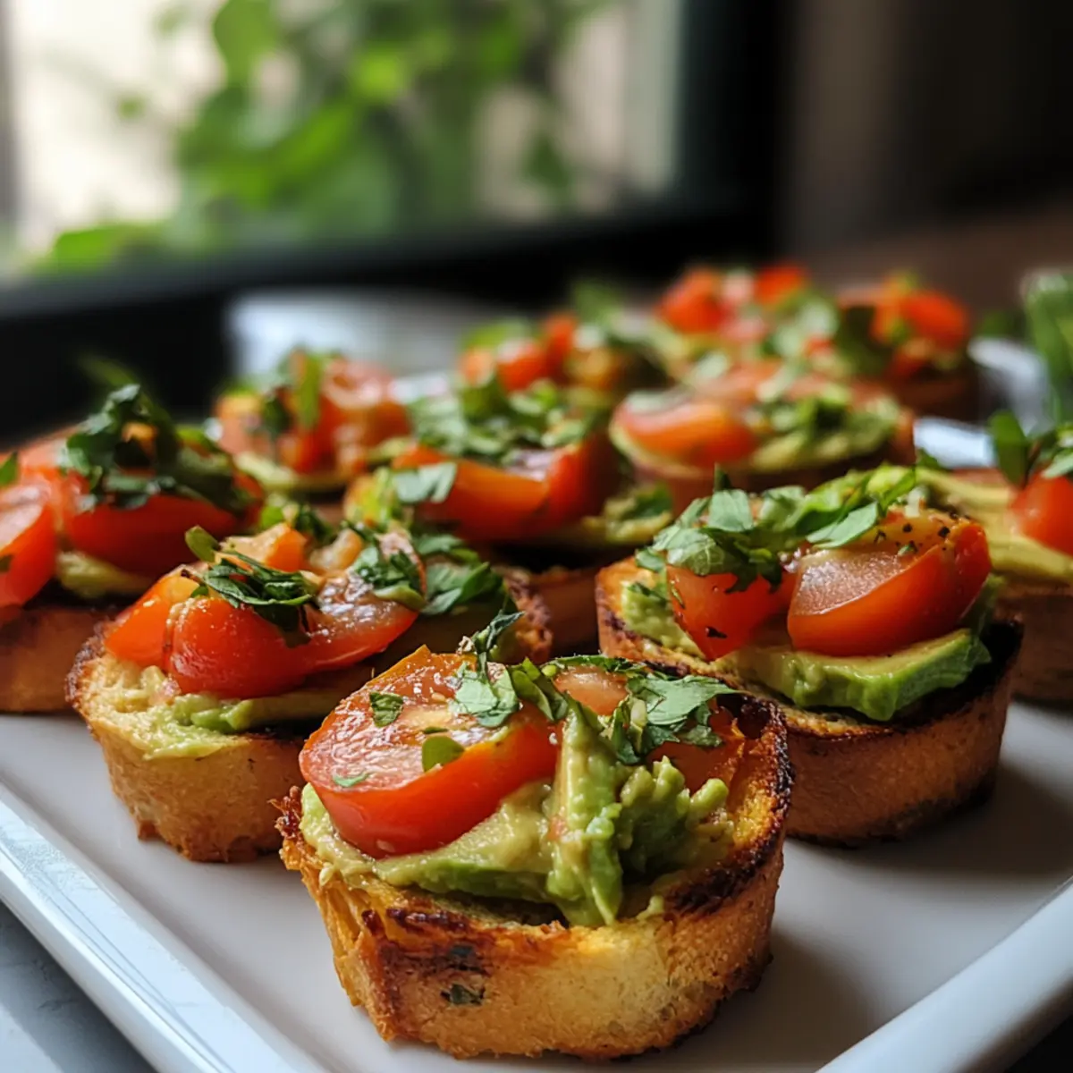 - Assemble cups: Fill each toast cup with avocado mash, top with tomato mixture, and garnish with a basil leaf for a beautiful finish.