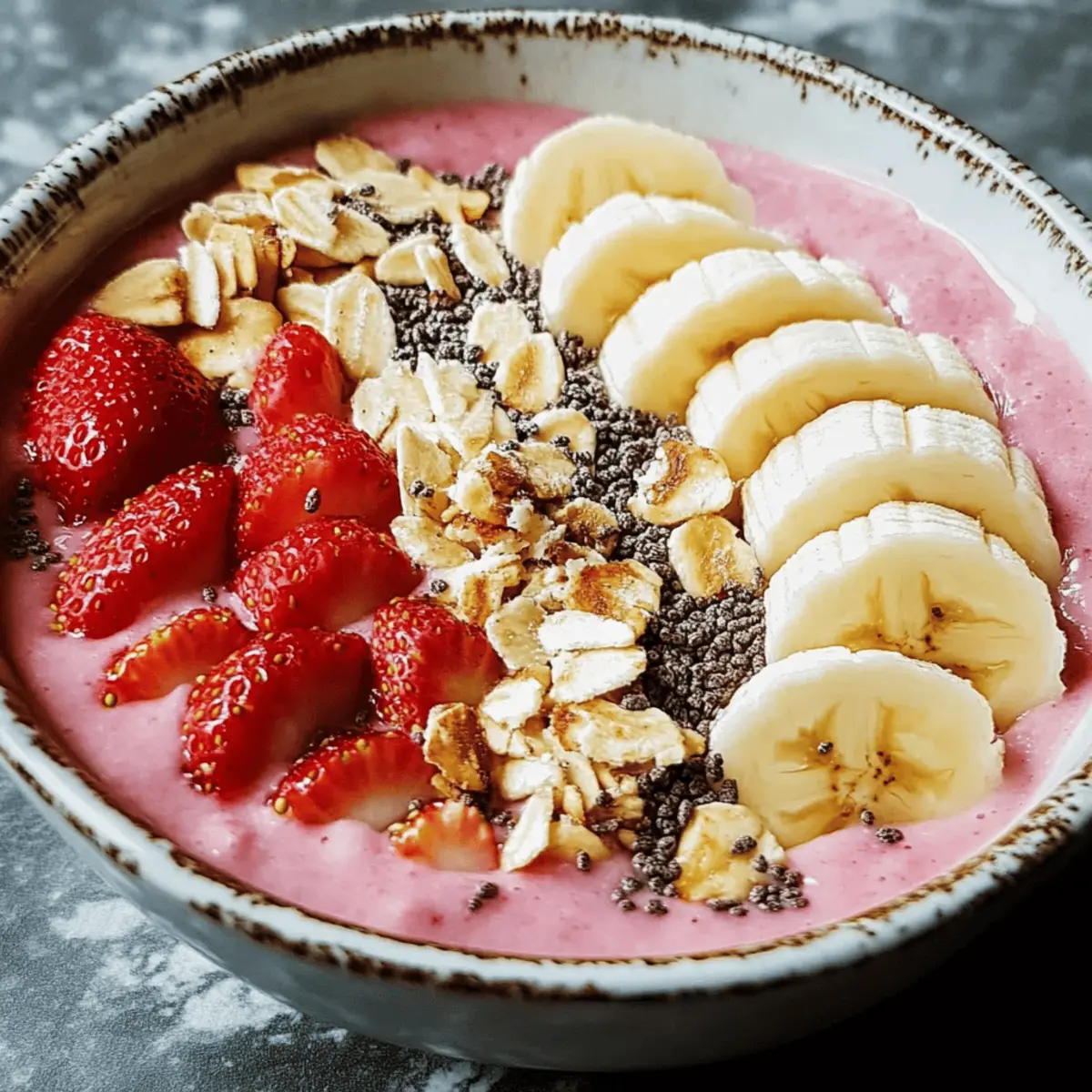 Fresh and vibrant: This bowl bursts with the natural sweetness of ripe strawberries and creamy bananas. Quick and easy: Ready in minutes, perfect for busy mornings. Nutritious boost: Packed with vitamins, fiber, and antioxidants to fuel your day. Texture delight: Creamy base meets crunchy toppings for a satisfying bite. Versatile: Customize with your favorite nuts, seeds, or superfoods for endless variety.