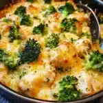 There are some dishes that just scream “home,” and for my family, Cheesy Chicken and Broccoli Bake is absolutely one of them. From the moment the aroma of melting cheese and savory chicken starts wafting through the house, everyone knows it’s going to be a good night. This isn’t just a meal; it’s a hug in a dish. I stumbled upon this recipe years ago, in search of something that was both comforting and relatively easy to throw together on busy weeknights. What I didn’t expect was how quickly it would become a family staple. Even my pickiest eater, who usually eyes anything green with suspicion, devours this cheesy broccoli bake without a second thought. The creamy sauce, the tender chicken, and the perfectly cooked broccoli florets, all blanketed in a golden, bubbly cheese crust – it’s a symphony of flavors and textures that just works. It’s the kind of dish that brings everyone to the table, ready to dig in and share stories. If you’re looking for a recipe that’s guaranteed to be a crowd-pleaser, one that’s both satisfying and surprisingly simple to make, look no further. This Cheesy Chicken and Broccoli Bake is about to become your new go-to comfort food.