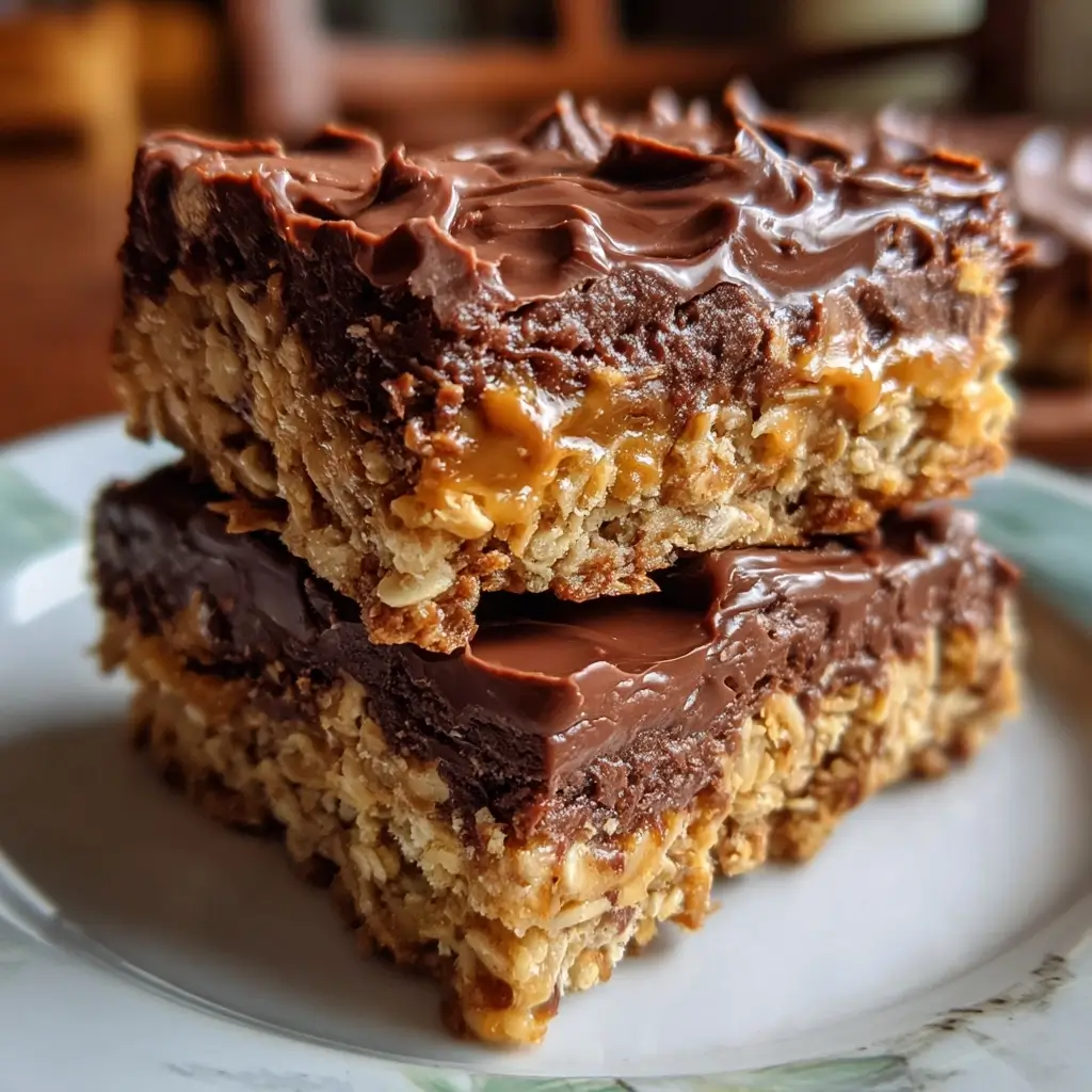 There are certain recipes that become woven into the fabric of a family, and for us, these Chocolate Peanut Butter Oat Bars are one of them. I first made them on a frantic Tuesday afternoon, needing a quick, no-fuss snack that could satisfy a house full of hungry kids and a perpetually snacky husband. I was skeptical that something so simple, with no baking required, could really be that good. I was wrong. The moment I pulled the chilled pan from the fridge and cut into that perfect, glossy chocolate topping, I knew we had a winner. The base was dense and chewy, bursting with the nutty flavor of peanut butter and the wholesome texture of oats. The chocolate layer on top cracked just slightly before melting in your mouth, creating a perfect balance of sweet and salty. That first batch disappeared in less than a day, with requests for a second before the last bar was even gone. Now, it’s our go-to for everything: a quick breakfast on the run, a packed lunchbox treat, a post-workout energy boost, and even a simple dessert to serve guests. It’s the kind of reliable, crowd-pleasing recipe that makes you feel like a kitchen hero with minimal effort.