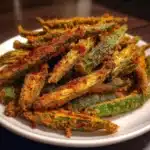 Store any leftover okra fries in an airtight container in the refrigerator for up to 3 days. To reheat and restore their crispiness, do not use a microwave. The best method is to bake them on a sheet pan in a 400°F (200°C) oven for 5-7 minutes or heat them in an air fryer at 380°F (190°C) for 3-4 minutes until hot and crispy again.