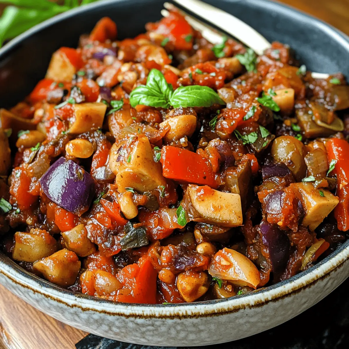 This Caponata Vegetarian Style recipe is perfect for meal prep enthusiasts looking to save precious time on busy weeknights! You can prepare the entire caponata base up to 3 days in advance; simply follow the cooking instructions, allow it to cool, and refrigerate in an airtight container to maintain its vibrant flavors. For best results, do not add the fresh herbs and toasted pine nuts until you’re ready to serve, which helps preserve their freshness and aroma. When you’re ready to enjoy, simply reheat on the stovetop over medium heat until warmed through, and finish with the herbs. Enjoy the delightful taste of homemade comfort, effortlessly!