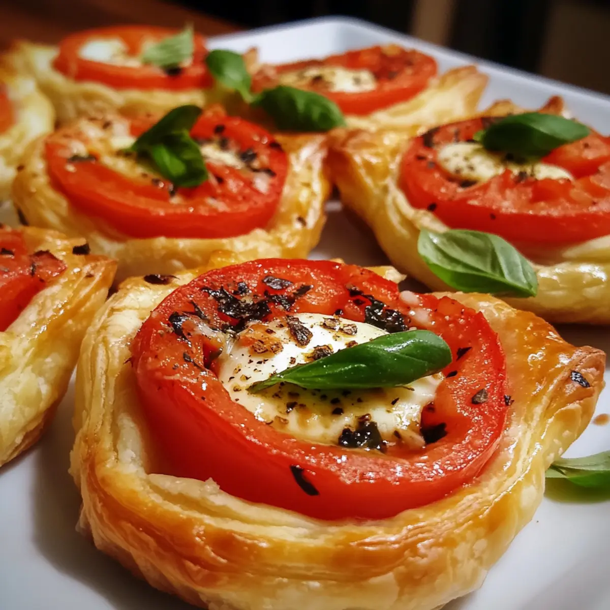 - Balsamic glaze – A drizzle elevates the flavor with tangy sweetness, highlighting the Caprese Puff Pastry Bites.