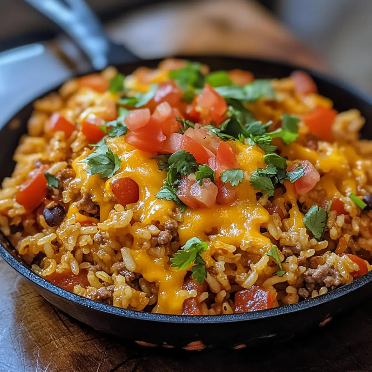 - Fluff & serve: Gently fluff rice with a fork, garnish with fresh cilantro if desired, and serve hot straight from the skillet.