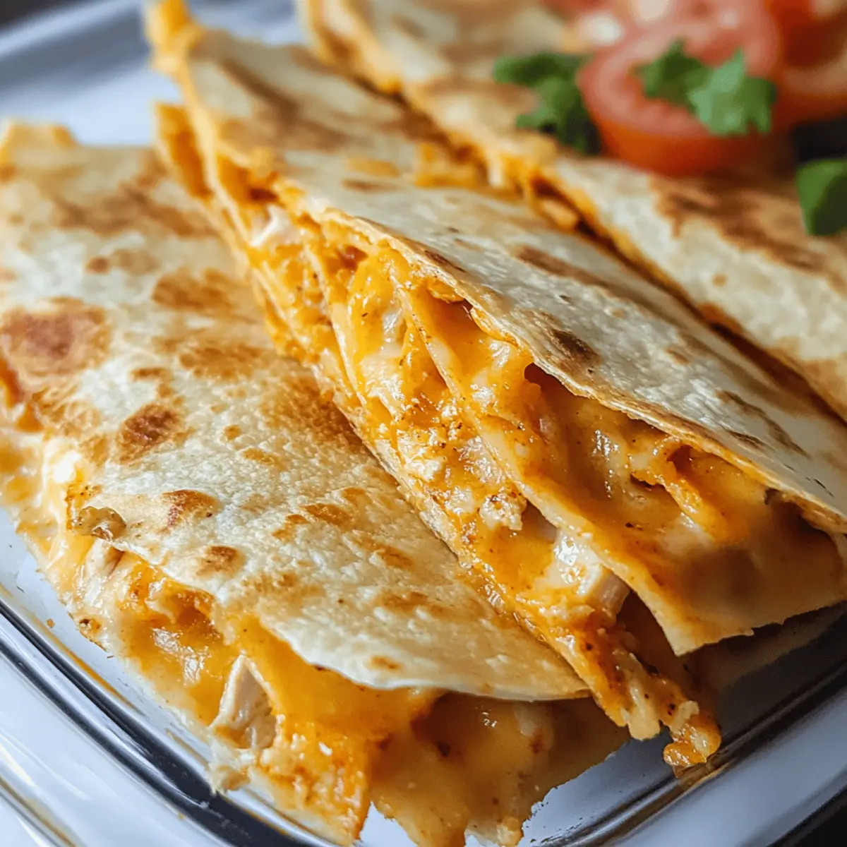These Chicken and Cheese Quesadilla Bakes are perfect for meal prep enthusiasts! You can prepare the chicken filling and cheese mixture up to 24 hours in advance, allowing the flavors to deepen when refrigerated. Simply sauté the onions and garlic, then mix with the chicken and chilies before transferring it to an airtight container. For the cheese mixture, blend the cream cheese, cheddar, and Monterey Jack, storing it separately. When ready to enjoy, layer the tortillas and fillings as instructed and bake for 15–20 minutes until crispy and indulgent. This way, you’ll have a deliciously satisfying homemade meal with minimal effort, just as good as when freshly made!
