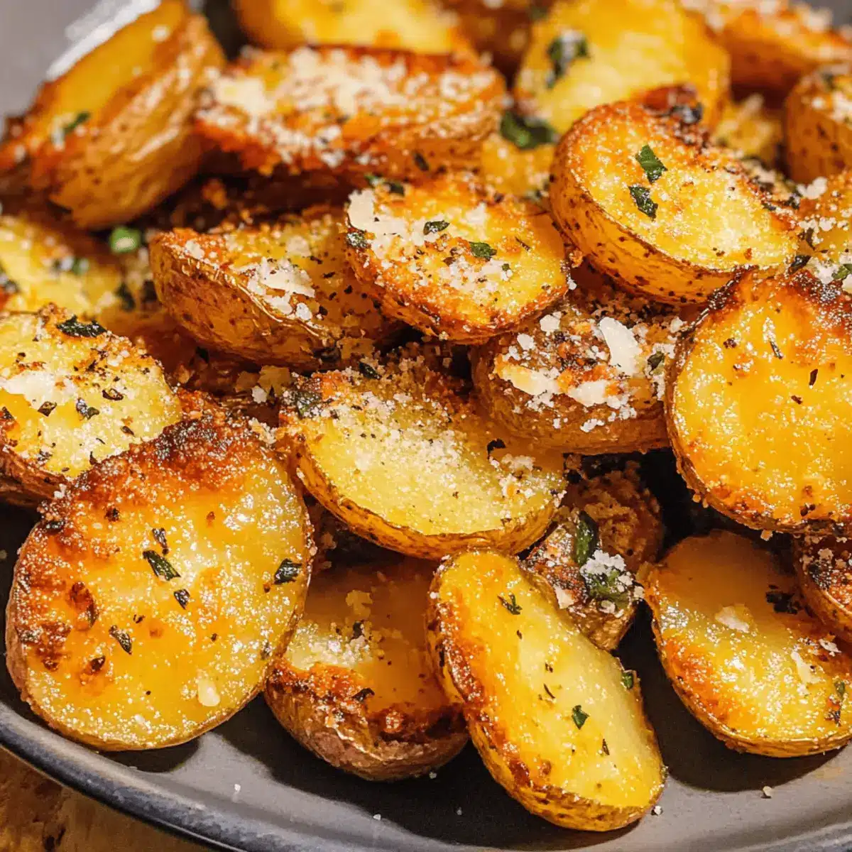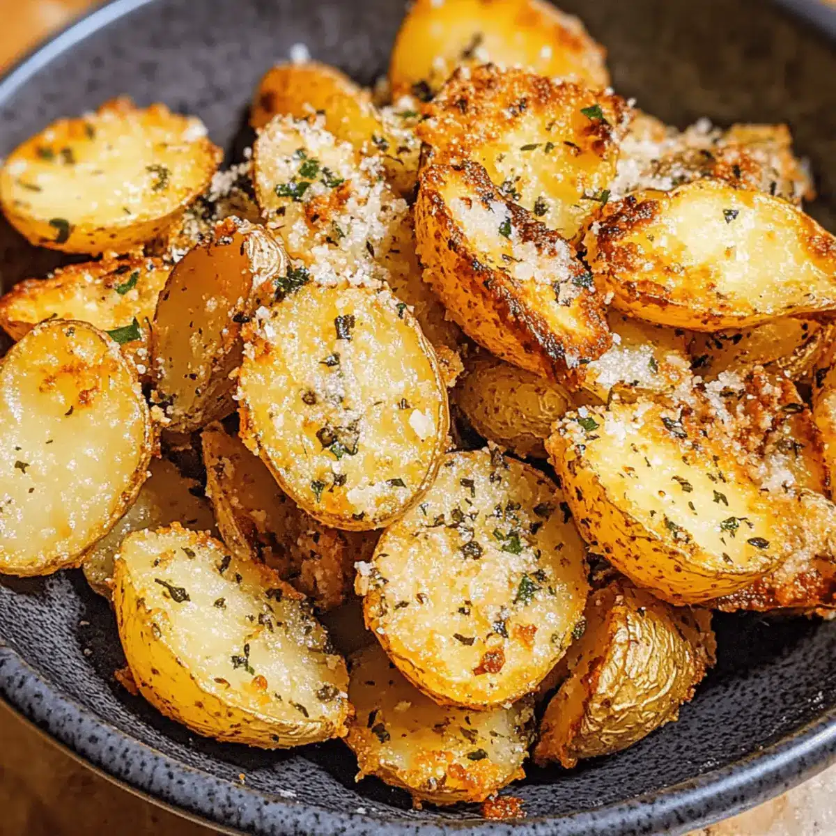 Crunchy Perfection: These potatoes boast an irresistible crispy crust while remaining fluffy inside. Bold Flavor: Garlic and Parmesan fuse to deliver a savory punch that keeps every bite exciting. Time-Saving: Roasted quickly, they’re perfect for busy cooks craving homemade goodness. Versatile Side: Ideal alongside dinner or as a snack that outshines any takeout. Crowd-Pleaser: Everyone loves the satisfying combination of crunch and cheesy richness!