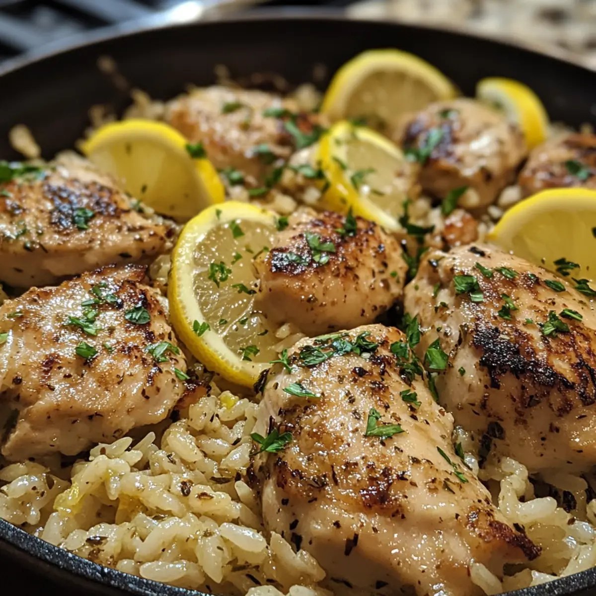 Easy Garlic Lemon Chicken Rice Skillet with Zesty, Juicy Flavor
