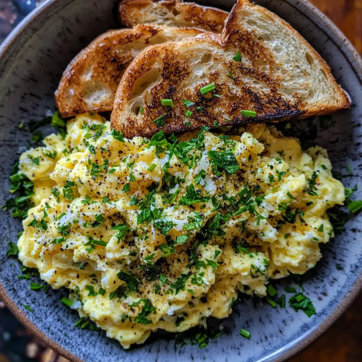 - Serve: Top each toast slice with the creamy scrambled eggs and garnish with extra parsley or cracked pepper for vibrant finish.