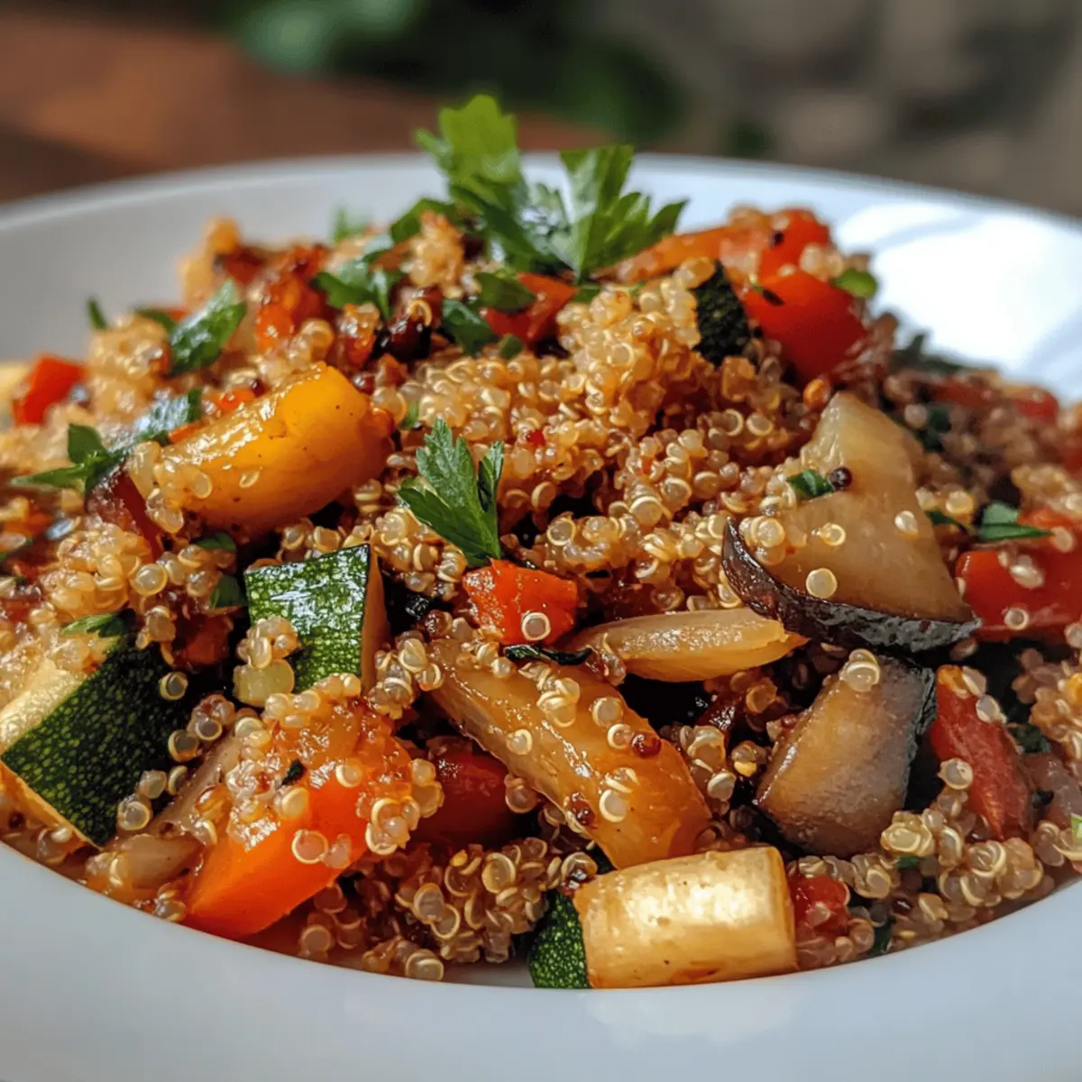 - Add the cooked quinoa to the skillet and toss gently until coated in the sauce. Heat through for 1–2 minutes before serving warm.