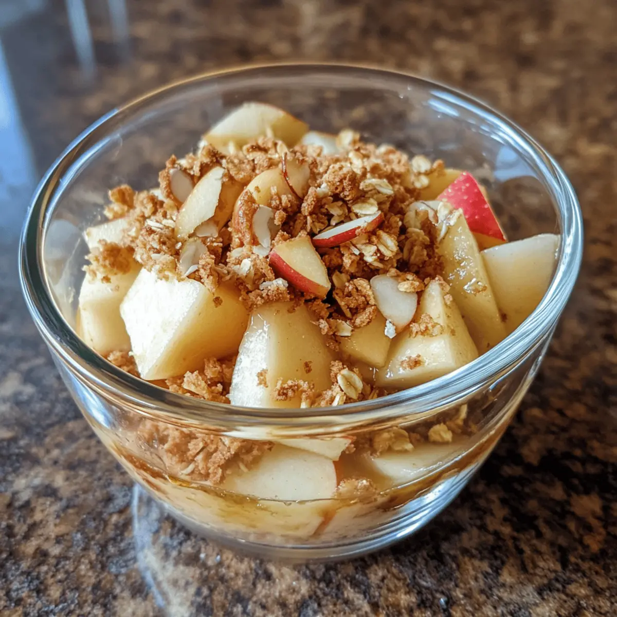 Top & Microwave: Evenly sprinkle the crumble over apples, then microwave on high for 2–3 minutes until the topping turns golden brown and crisp.