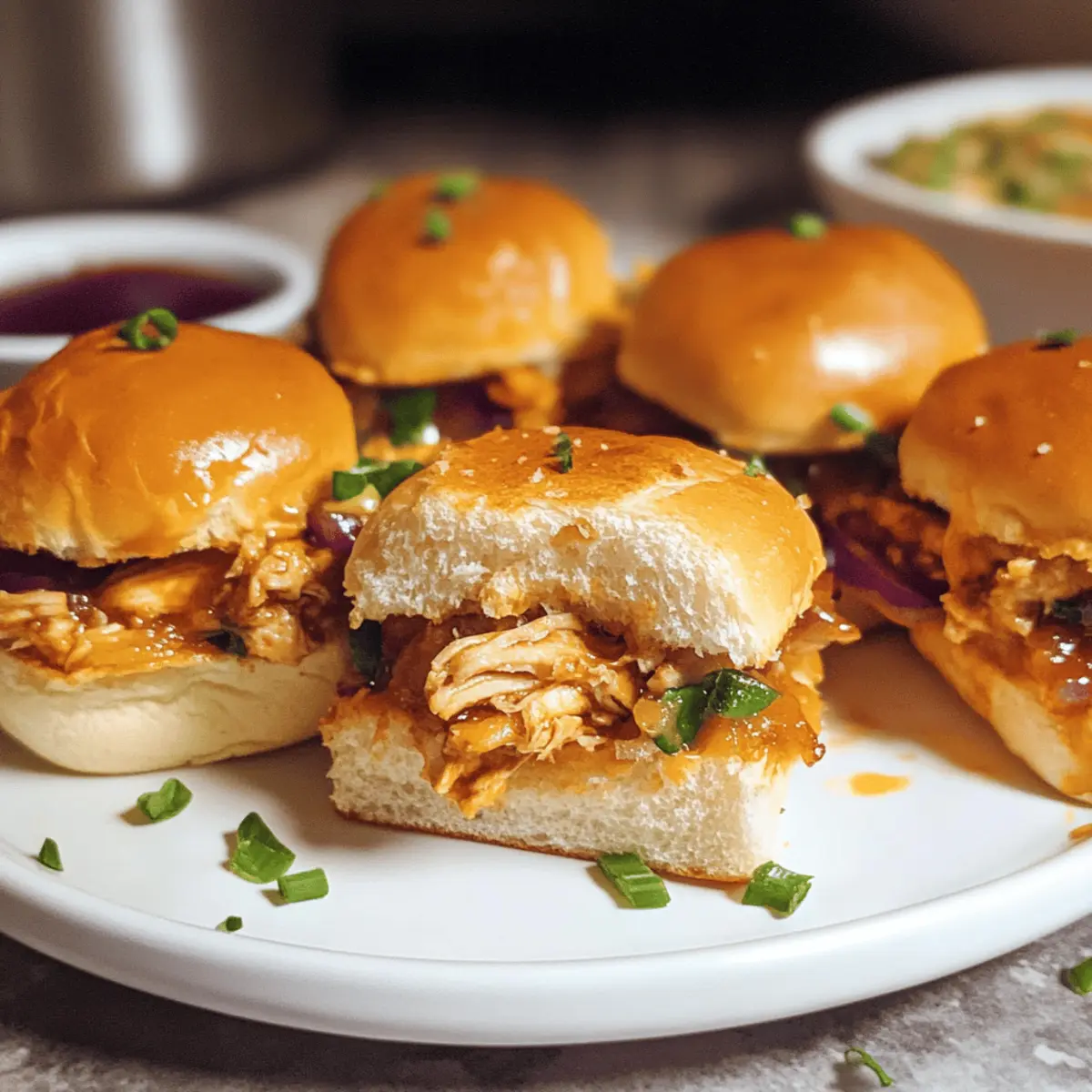 - Mini slider buns – Soft and slightly buttery, they cradle the juicy chicken perfectly.