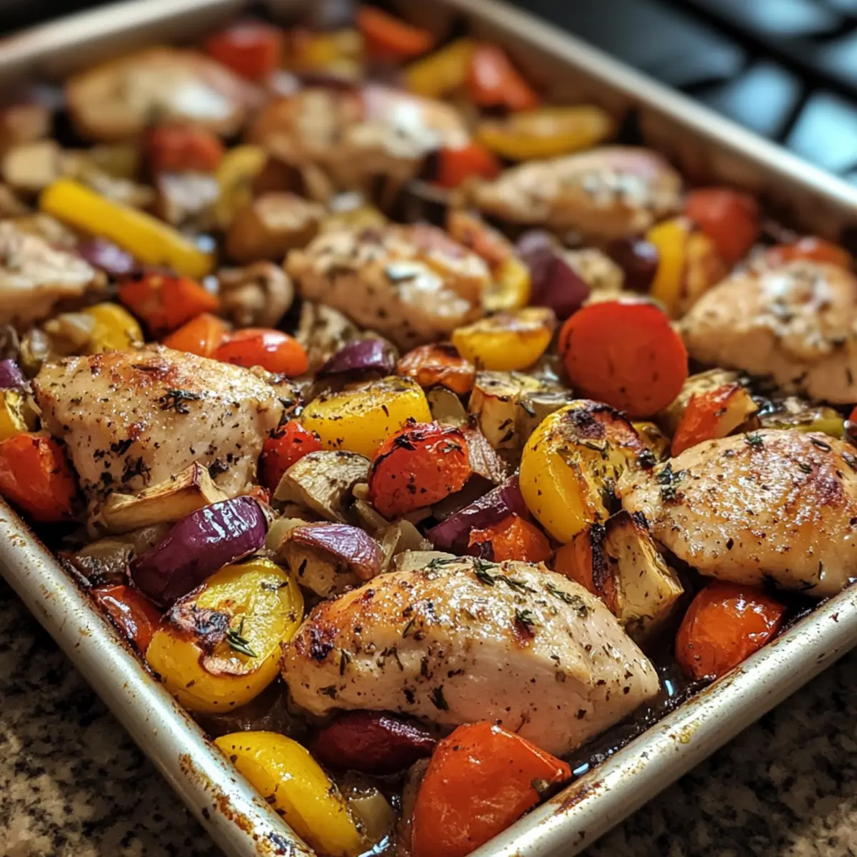 Effortless cooking: This recipe combines everything in one pan for easy prep and cleanup. Flavor-packed: Juicy chicken melds beautifully with crisp-roasted veggies, all enhanced by simple, aromatic herbs. Time-saver: Perfect for busy weeknights when you want homemade without the hassle. Versatile: Swap in your favorite vegetables or spices to make it your own. Crowd-pleaser: A comforting, wholesome meal that satisfies everyone at the table.