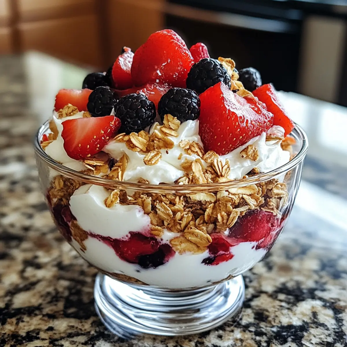 This happens when berries release too much juice or if yogurt is too loose. To avoid this, gently pat berries dry if they seem wet and use thick Greek yogurt for a sturdier base. Also, layering carefully without stirring keeps juices from mixing too much. Use fresh, firm berries and avoid letting the parfait sit too long before serving.