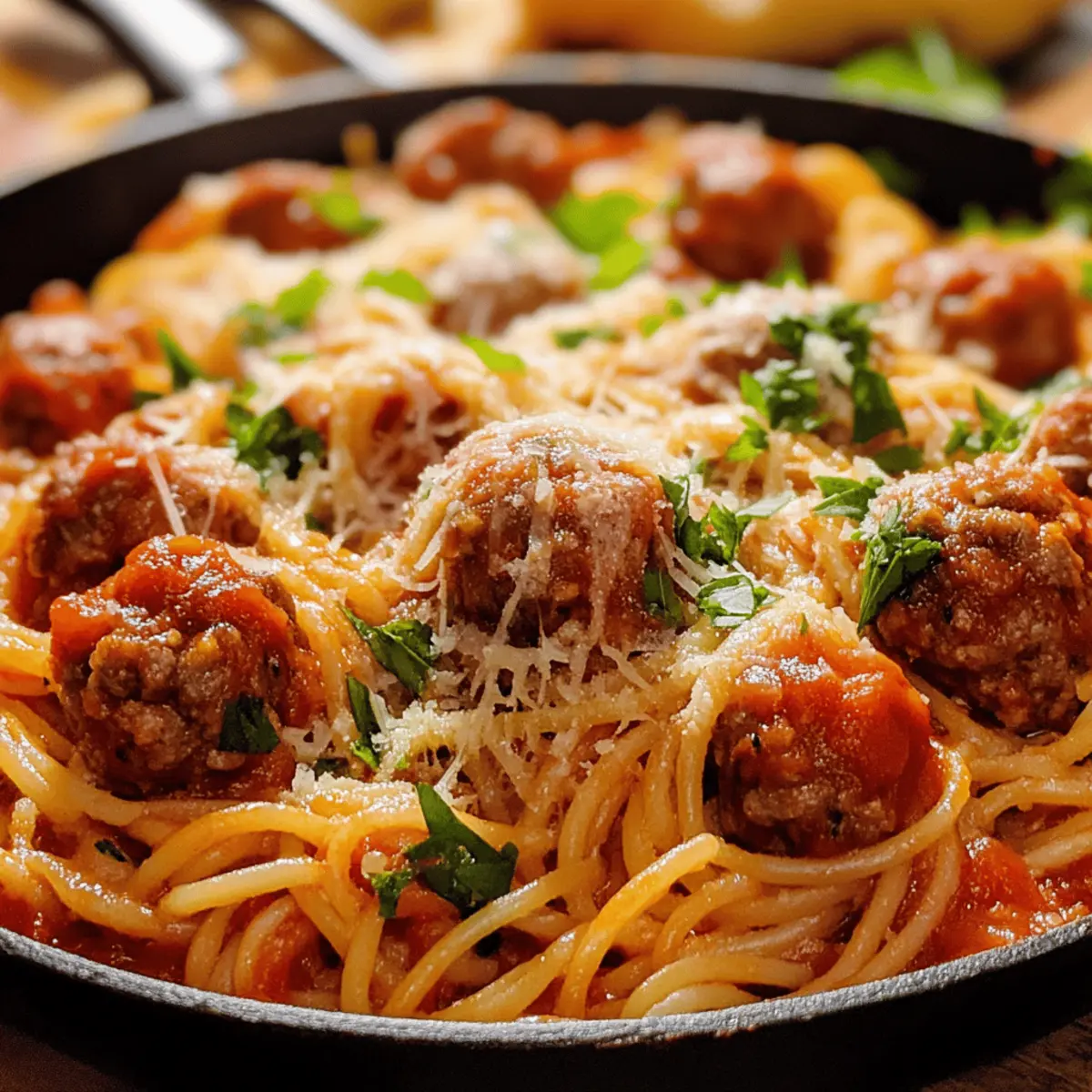 Simplicity is key with this one-pan wonder—everything cooks together, saving you time and cleanup. Rich, juicy flavor comes from tender homemade meatballs simmered right in the tomato sauce. Comfort food magic shines through classic Italian tastes that satisfy any craving. Plus, it’s perfectly portioned for quick family meals or busy weeknights. Whether you’re a home cook or chef, this skillet recipe brings savory satisfaction without fuss!