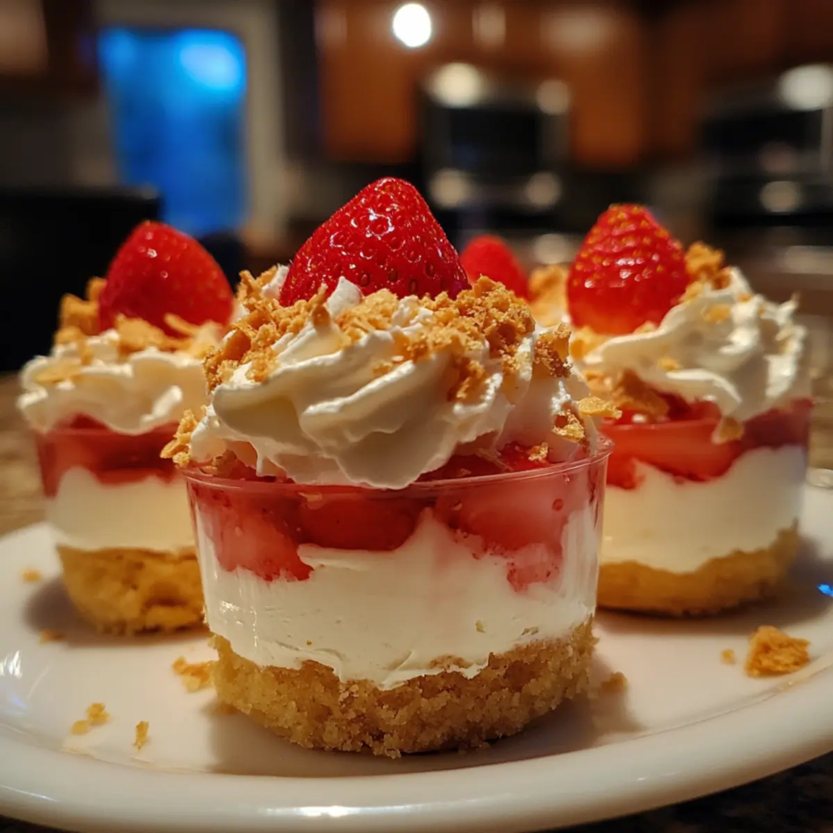 Irresistible Flavor: Creamy cheesecake meets fresh strawberries for a perfect sweet-tart combo. Effortless Elegance: Individual cups mean no slicing or mess—just pure enjoyment. Quick to Make: Minimal prep time makes it ideal for busy days or last-minute guests. Crowd-Pleaser: Everyone loves this classic flavor with a fresh, fun twist. Versatile Serving: Perfect for casual family treats or impressive party desserts.