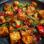 - Combine and Thicken: Reduce the heat to medium-low. Return the crispy tofu to the skillet with the vegetables.