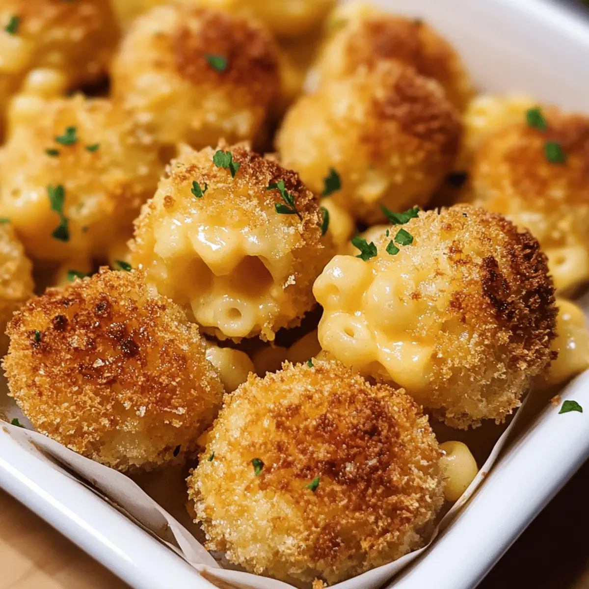 Crunchy, creamy delight: Each bite hits the perfect balance of crispy edges and a luscious, cheesy center. Speedy prep: Whip these up quickly with everyday ingredients for a hassle-free snack. Crowd-pleaser alert: Ideal for parties or cozy nights, satisfying kids and adults alike. Versatile and fun: Serve as an appetizer, side, or indulgent treat anytime. Mess-free comfort food: All the cheesy goodness of mac and cheese without the spoon and plate fuss.