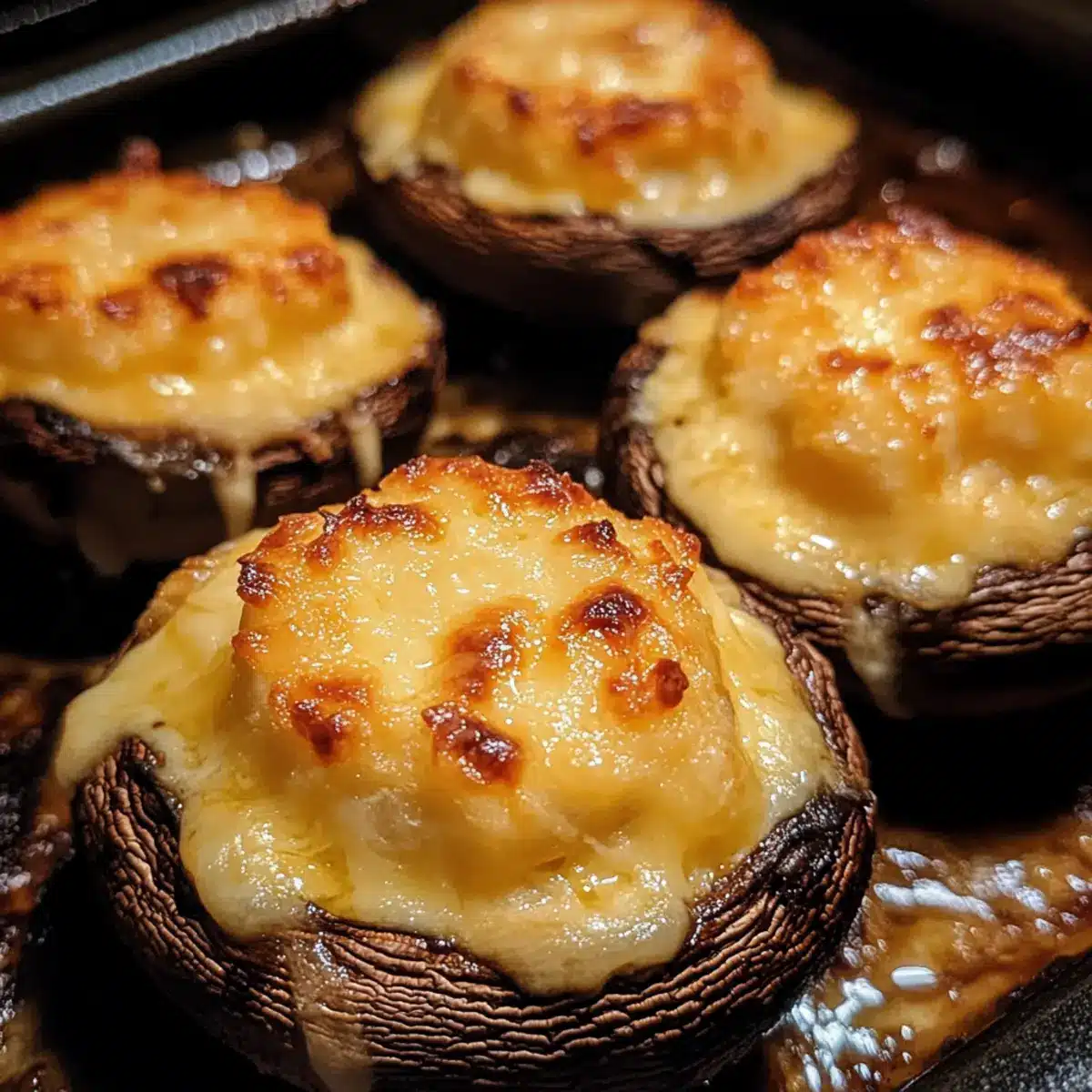 Add toppings: Sprinkle breadcrumbs or bacon bits over each cap, then broil 1–2 minutes for a crispy, golden finish and extra flavor.