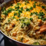 Of all the culinary battles waged in a family kitchen, the “Battle of the Weeknight Dinner” is often the most grueling. I remember one particularly frantic Tuesday, staring into the pantry with that all-too-familiar sense of dread. The kids were hungry, my energy was flagging, and the thought of making yet another round of pasta or chicken nuggets felt like a personal defeat. My eyes landed on a can of chickpeas and a bag of rice, and a flicker of an idea began. I knew chickpeas were a tough sell for my little ones, who viewed them with the same suspicion usually reserved for broccoli. But what if I hid them? What if I surrounded them with creamy rice, gooey, melted cheese, and familiar, comforting flavors? That night, the Kid-Friendly Chickpea Rice Casserole was born out of sheer desperation, and to my utter astonishment, it became an instant legend in our home. I watched, holding my breath, as my picky six-year-old took a hesitant bite, his brow furrowed in concentration. Then, a slow smile spread across his face. “Mom, this cheesy rice is awesome! What are these little soft balls in it?” he asked. “Magic beans,” I said with a wink. And just like that, we had a new family favorite. This casserole isn’t just a recipe; it’s my secret weapon for a peaceful, delicious, and secretly healthy dinner that brings everyone to the table without a single complaint. It’s warm, comforting, and packed with goodness, proving that sometimes the best meals come from a little bit of pantry magic and a whole lot of hope.
