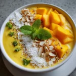 There are some mornings when the usual routine just won’t cut it. Cereal feels bland, toast seems uninspired, and the thought of another scramble is simply tiring. It was on one such morning, staring into the pantry with a distinct lack of enthusiasm, that I decided to create something that felt less like a meal and more like an escape. I wanted sunshine in a bowl. With a bag of frozen mango chunks in the freezer and a can of creamy coconut milk in the pantry, the idea for this Mango Coconut Smoothie Bowl was born. The first time I blended it, the color alone was enough to lift my spirits—a vibrant, sunny yellow that promised pure tropical bliss. The taste? It was even better. It was rich, creamy, and intensely fruity without being overly sweet. It instantly transported me to a mental vacation, complete with palm trees and a warm breeze. When I served it to my family, the initial silence was followed by the clinking of spoons against ceramic and a chorus of “Wow, this is amazing!” It has since become our go-to for a special weekend breakfast, a healthy afternoon treat, and even a light, refreshing dessert. It’s more than just a recipe; it’s our little bowl of happiness, a simple way to bring a taste of the tropics to our kitchen table, no matter the weather outside.