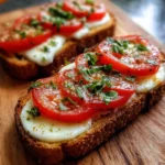 Of all the quick meals in my arsenal, this Quick Tomato Mozzarella Toast holds a special place in my heart and my weekly menu. I first threw it together on a chaotic Tuesday evening when I had minimal time and even less inspiration. What started as a “let’s see what’s in the fridge” experiment quickly turned into a family-wide obsession. The moment I pulled them from the oven, the aroma of toasted garlic, sweet roasted tomatoes, and fresh basil filled the kitchen. My kids, who are usually skeptical of anything with visible “green things,” devoured them without a second thought. The combination of the crispy, golden-brown bread, the juicy pop of the warm tomatoes, and that glorious, stretchy pull of melted mozzarella is simply divine. It’s a recipe that feels both incredibly comforting and refreshingly light, proving that you don’t need hours in the kitchen to create something truly delicious and memorable. It has since become our go-to for quick lunches, easy appetizers for guests, and even a simple, satisfying dinner alongside a green salad.