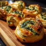 I still remember the first time I made these Savory Spinach Puff Pastries. It was for a last-minute family get-together, and I was in a complete panic about what to serve. I had a box of puff pastry in the freezer and a bag of spinach in the fridge, and a little spark of inspiration struck. I quickly whipped up a creamy, cheesy spinach filling, folded them into little golden parcels, and slid them into the oven, hoping for the best. The aroma that filled the house was the first sign of success—a warm, buttery, garlicky scent that had everyone migrating toward the kitchen. When I pulled them out, puffed up and gloriously golden-brown, they disappeared from the platter in minutes. My notoriously picky nephew, who usually avoids anything green, was caught grabbing his third one. My sister-in-law immediately asked for the recipe. Since that day, these pastries have become my go-to secret weapon for everything from holiday parties and game day snacks to a simple, satisfying lunch alongside a fresh salad. They look incredibly elegant and taste like they took hours to prepare, but the truth is, they are one of the simplest and most rewarding recipes in my collection. The flaky, shatteringly crisp layers of puff pastry giving way to a warm, savory, and tangy spinach and cheese filling is a textural and flavorful experience that never fails to impress. This recipe isn’t just about food; it’s about creating moments of delicious, effortless joy.