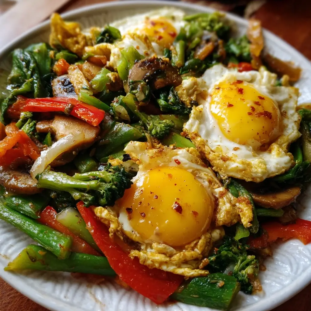 Of all the recipes that have graced my family’s dinner table, this Simple Egg and Veggie Stir Fry holds a special place in our weekly rotation. I remember the first time I made it, born out of a classic “what’s in the fridge?” moment on a hectic Tuesday evening. The kids were hungry, my energy was waning, and the thought of a complicated meal was overwhelming. I grabbed some eggs, a colorful assortment of vegetables, and a few pantry staples for a quick sauce. What happened in the wok over the next 20 minutes was nothing short of magic. The kitchen filled with the incredible aroma of sizzling garlic, ginger, and sesame, and the vibrant colors of the vegetables promised a meal that was as nourishing as it was beautiful. When I served it up over steaming bowls of rice, the silence that fell over the dinner table was the highest compliment a parent can receive. My husband, who is usually my toughest critic, looked up after a few bites and declared it “a keeper.” The kids, who often push vegetables around their plates, happily devoured every last bit of bell pepper and broccoli. It was a resounding success. This dish became our hero—a testament to the fact that delicious, wholesome, and family-pleasing meals don’t need to be complicated or time-consuming. It’s endlessly customizable, incredibly fast, and a fantastic way to clean out the vegetable crisper. This isn’t just a recipe; it’s a solution for busy weeknights, a celebration of fresh ingredients, and a guaranteed crowd-pleaser that brings a little bit of joy and a lot of flavor to the table.