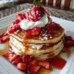 Of all the weekend breakfast traditions in our home, pancake Sunday is by far the most cherished. For years, we cycled through the classics: buttermilk, blueberry, the occasional chocolate chip. They were always delicious, always a welcome treat. But one day, inspired by a slice of strawberry cheesecake I’d had the night before, a new idea sparked. What if we could capture that decadent, creamy, fruity perfection in a pancake? That question led to the birth of this recipe, and I can say without a shred of exaggeration that it has completely revolutionized our breakfast routine. The first time I served these Strawberry Cream Cheese Pancakes, the usual boisterous chatter at the table fell to a respectful hush, broken only by the clinking of forks and murmurs of “Wow.” The kids, who are usually my toughest critics, were completely mesmerized. They loved the surprise pocket of tangy, sweet cream cheese hiding inside the fluffy pancake, and the vibrant, fresh strawberry sauce cascading over the top was the ultimate crowning glory. It felt less like a simple breakfast and more like a gourmet experience. This recipe has since become our go-to for special occasions, lazy weekend brunches, and whenever we need a little extra joy to start our day. It’s a symphony of textures and flavors—the pillowy softness of the pancake, the smooth richness of the cream cheese filling, and the bright, sweet burst of homemade strawberry sauce. It’s more than a meal; it’s a memory in the making, and I am so thrilled to share the magic of our new family favorite with you.