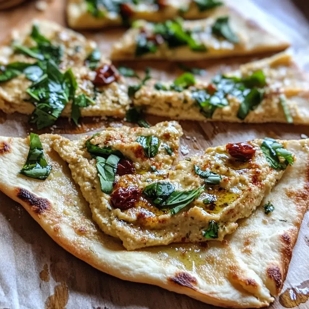 - Arrange the warm, toasted flatbread wedges artfully around a central bowl of garnished hummus.