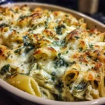 Of all the comfort foods that grace our family table, there are a select few that earn the coveted title of “unanimous favorite.” This Vegetarian Spinach Artichoke Pasta Bake is, without a doubt, at the top of that list. I first made it on a chilly Tuesday evening, looking for something hearty and satisfying that didn’t involve a lot of fuss. I was hoping for a simple, cheesy pasta dish. What I got was a culinary revelation. As I pulled the casserole dish from the oven, the kitchen filled with an irresistible aroma of toasted cheese, garlic, and herbs. The top was a beautiful mosaic of golden-brown mozzarella, bubbling with the creamy sauce beneath. The moment of truth came at the dinner table. My kids, who can sometimes be skeptical of anything green, took their first bites and their eyes lit up. My husband, a lover of classic, rich flavors, declared it one of the best pasta dishes he’d ever had. The magic is in the perfect balance: the tender pasta, the earthy spinach, the tangy artichoke hearts, and that luxuriously creamy, cheesy sauce that ties it all together. It tastes like the beloved spinach artichoke dip and a comforting pasta casserole had a delicious baby. It has since become our go-to for cozy family dinners, potlucks with friends, and even a special-occasion meal because it feels indulgent and special, yet is surprisingly simple to create.